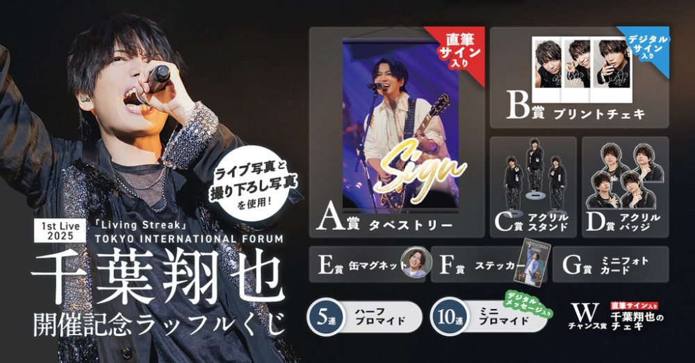 千葉翔也 1st Live 2025「Living Streak」開催記念ラッフルくじの詳細が決定いたしました。